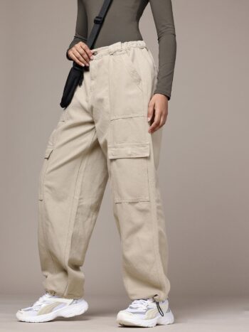 Women Wide Leg High-Rise Clean Look Stretchable Cargo Jeans