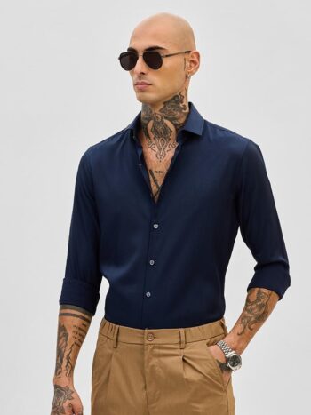 Men Smart Button-Down Collar Textured Cotton Formal Shirt Hina Color