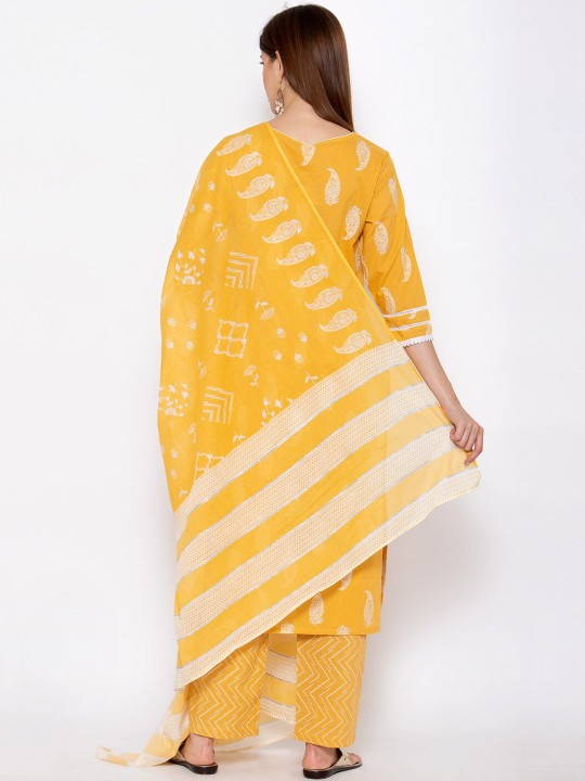 3 pcs Suit Regular Pure Cotton Kurta with Trousers and Dupatta