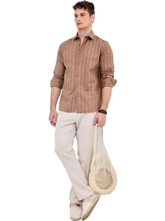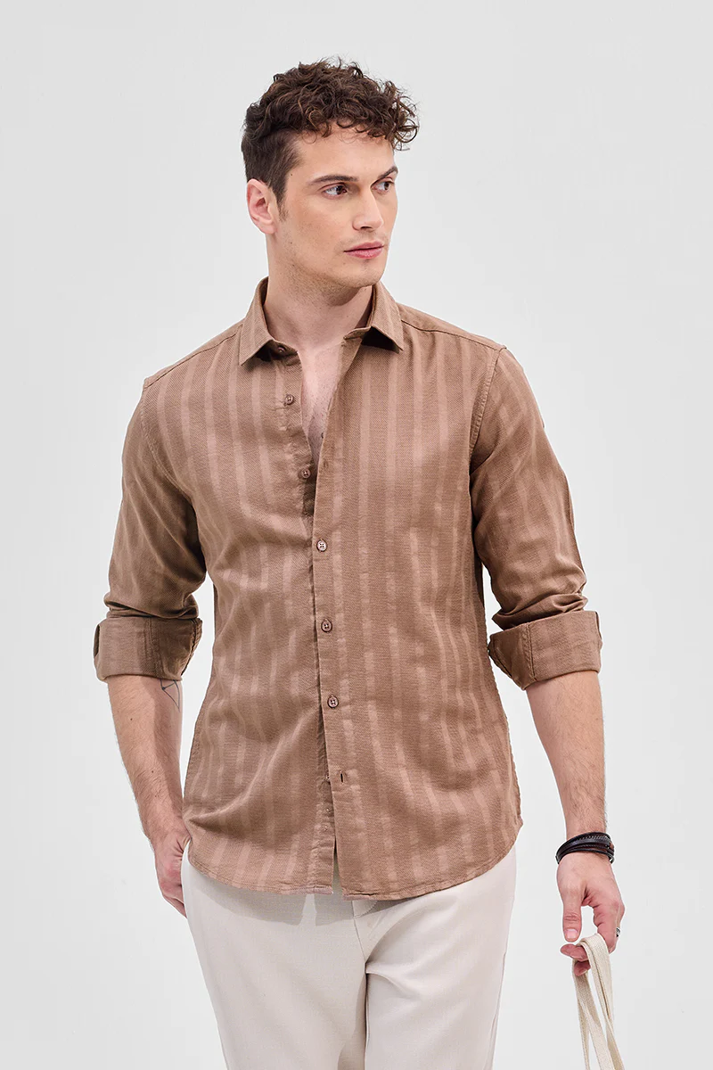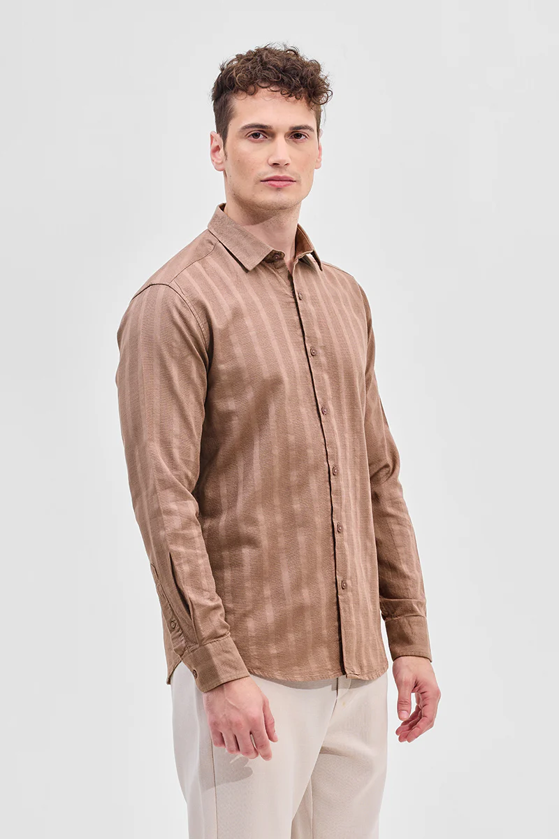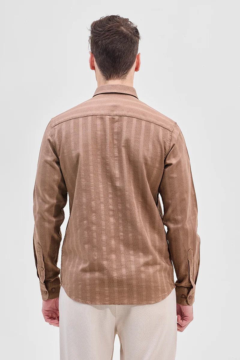 BROWN SELF-DESIGN SLIM FIT SHIRT