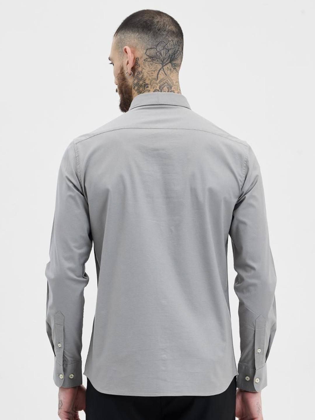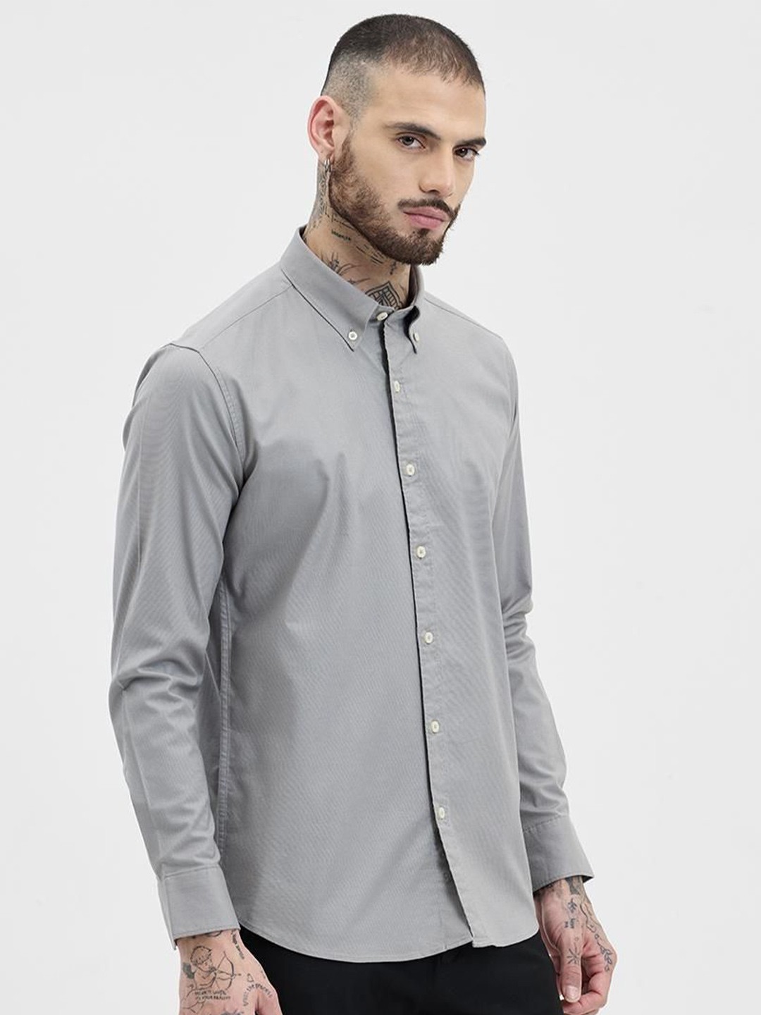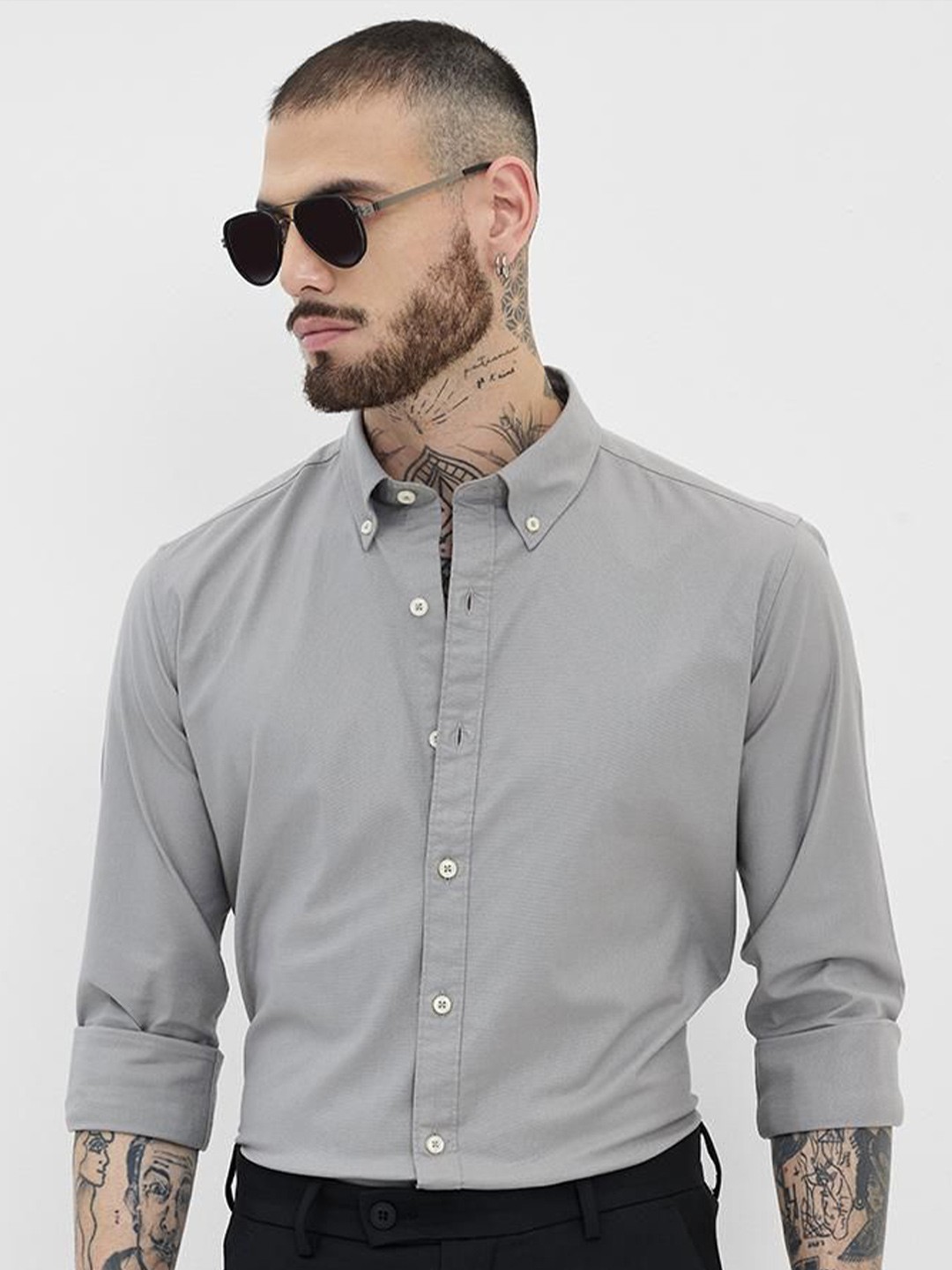 Men Smart Button-Down Collar Textured Cotton Formal Shirt grey